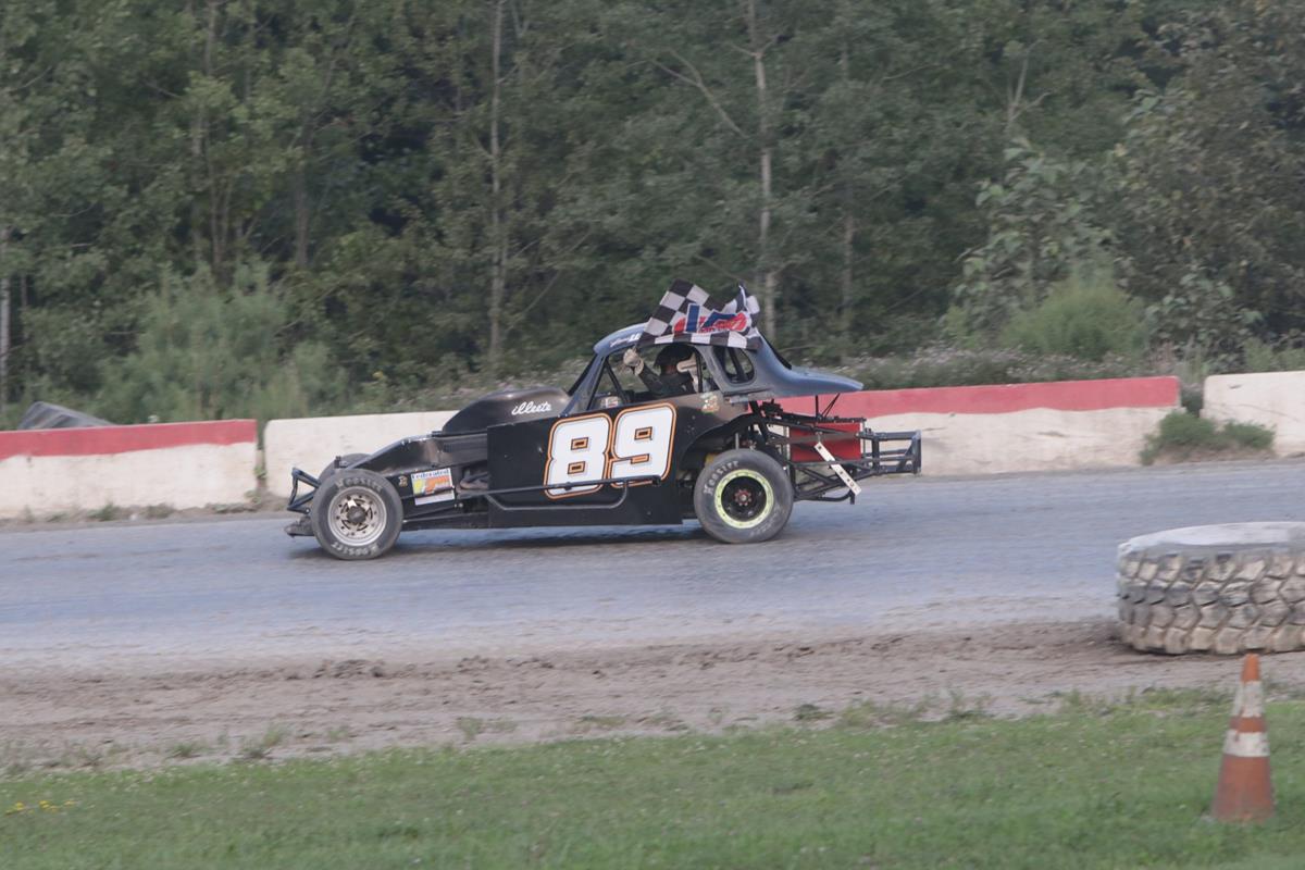 Week thirteen feature winners of the 57th consecutive season sponsored by Wells River Savings Bank were DJ Robinson in the Sabil & Sons DIRTcar Sportsman Modifieds; Lucas Wheeler® in the Wells River Chevrolet DIRTcar Sportsman Coupes; the Xtreme DIRTcar DMA Midgets were OFF, the High Country Dispensary Late Models were OFF, LaValley Building Supply Dirt Stocks MADNESS Segment one Keith Mansur®, Segment two Andrew Fitzgerald, Segment three Ryan Sayers®, Overall Tyler Fellows®, Woodsville Power Equipment Ridge Runners Logan Martin, and for the Joe Mama’s Sporting Goods 4/6 Cylinder Enduros Hunter Garduno.